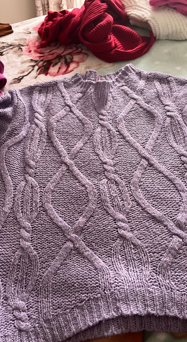 Bohem Tarz Uzun lila Kadın Triko Kazak