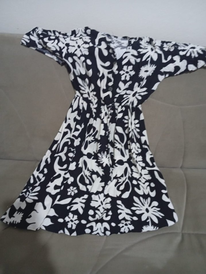 Uzun, V yakalı ve kısa kollu bu beyaz kimono, bol kesim ve drapeli bohem desenlere sahiptir. Günlük kullanım için uygundur.