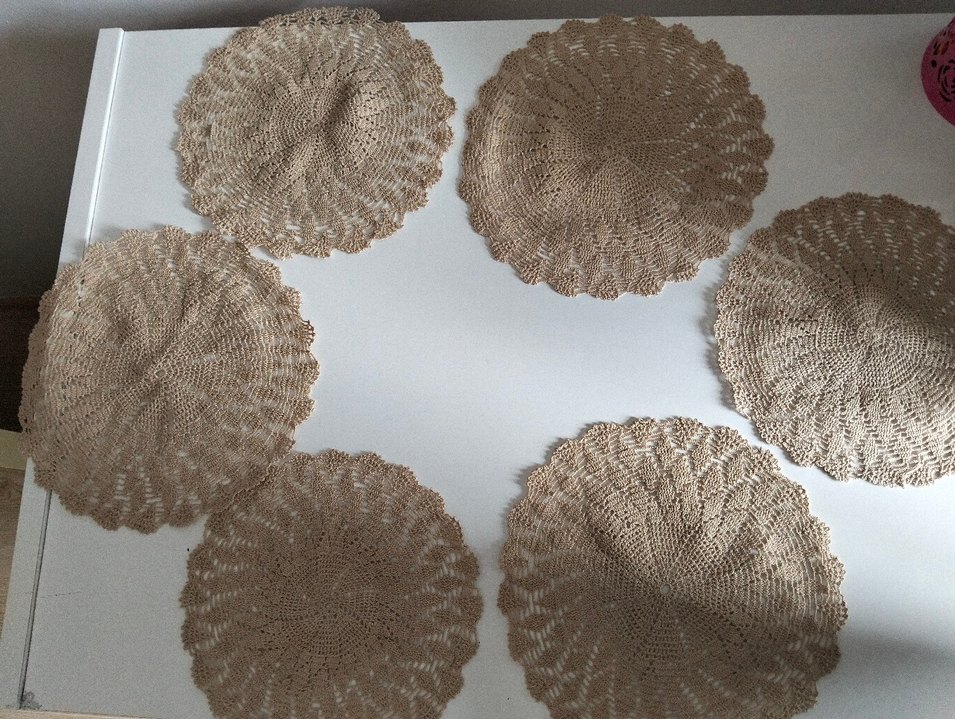 Yuvarlak, doğal tonda el örgüsü Amerikan servisler, bohem tarzda ince desenlerle. Masanıza rustik bir dokunuş katmak için ideal.