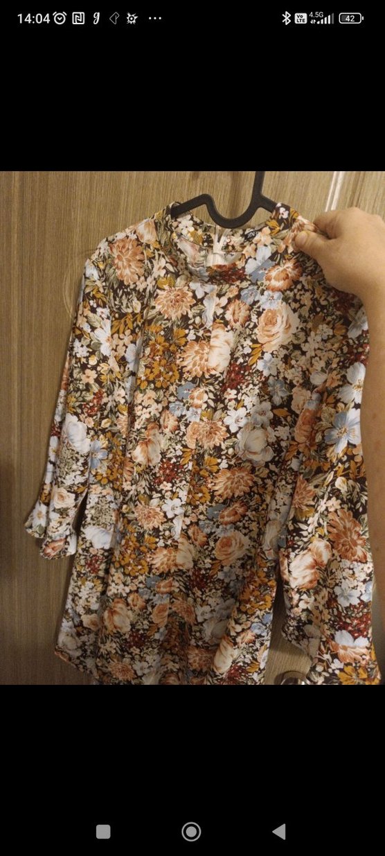 Bol kesim, uzun kollu ve yüksek yakalı bohem tarz Pastel renkli çiçek desenli, düğmeli ve midi boyda, Zara orjinal üründür tertemiz sorunsuz bir defa giyildi