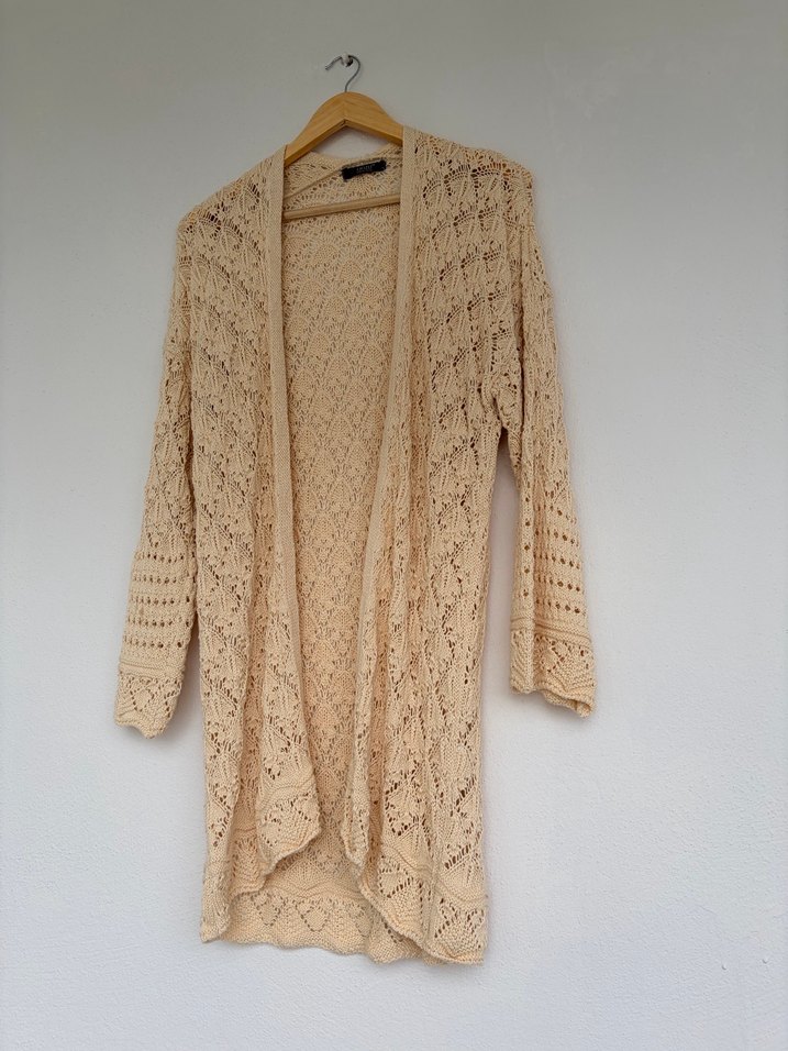Ürün bohem tarza uygundur. Kol detayları vardır resimde belirtilmiştir. Uzun ceket bir yada iki kez kullanılmıştır. İyi durumdadır