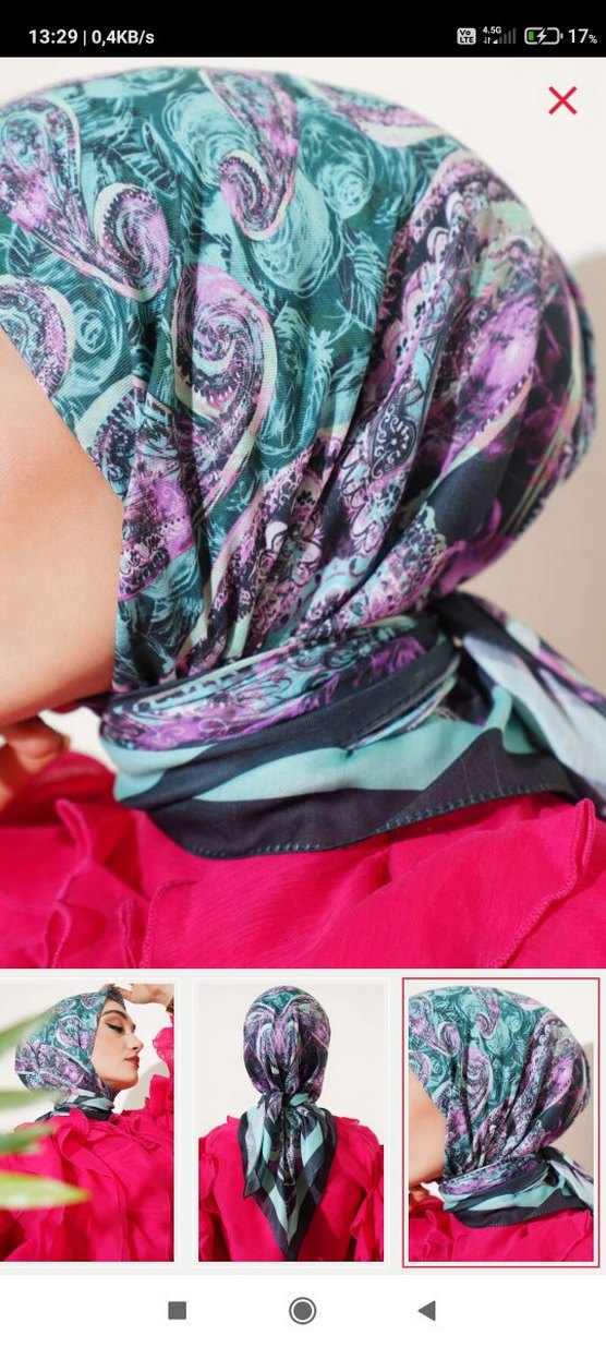 Kadınlar için çok renkli, bohem tarzda dökümlü başörtüsü. Yumuşak sentetik kumaştan, mütevazı ve canlı desenlere sahip.