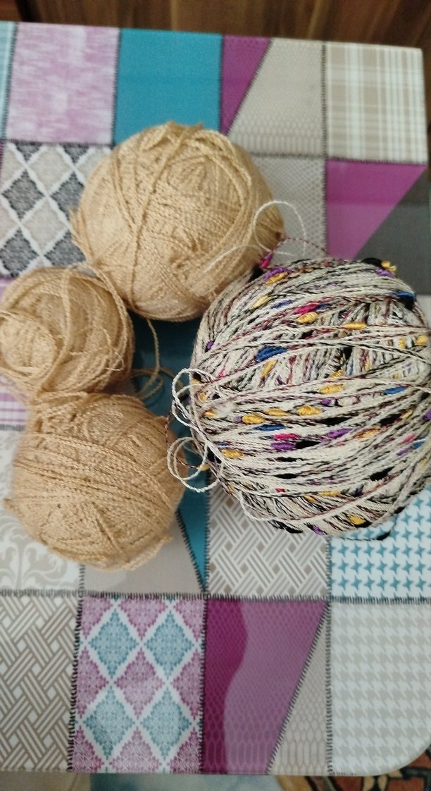 Bohem tarz el işleri için üç bej ve bir renkli iplik topu. Yaratıcı projeler için uygundur .
