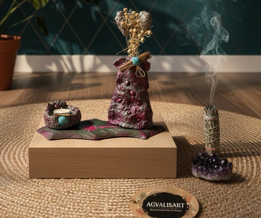 Bohem tarzda el yapımı dekoratif vazo, kurutulmuş çiçekler ve doğal ip ile bağlanmış turkuaz süslemeye sahiptir. Mekâna rustik bir hava katar. Doğal taş tamamen organik ürünler kullanılmıştır, vazo içeriği camdır, tütsülük bambu çubuklu kullanılabilir bohem üründür 4parça#BohemDekor#VintageHome#