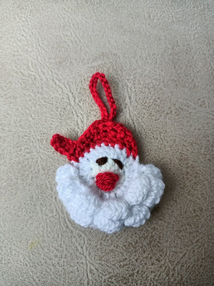 Kırmızı şapkalı ve kabarık beyaz sakallı, bohem tarzda el yapımı Noel Baba süsü.
