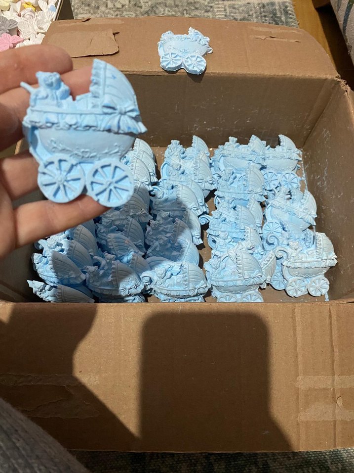 Bohem tarzda detaylı tasarımlı, açık mavi bebek arabası süsleri. Dekoratif amaçlı kullanıma uygundur. 50 adet
