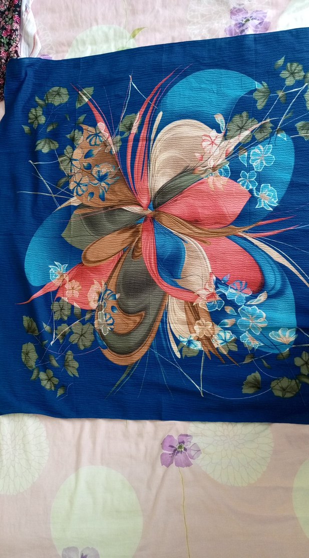 Mavi renkli, çiçek desenli ve dökümlü uzun kadın şalı, yumuşak sentetik kumaştan yapılmıştır. Bohem tarzda günlük kullanım için uygundur. Ürün sıfırdır hiç kullanılmamıştır