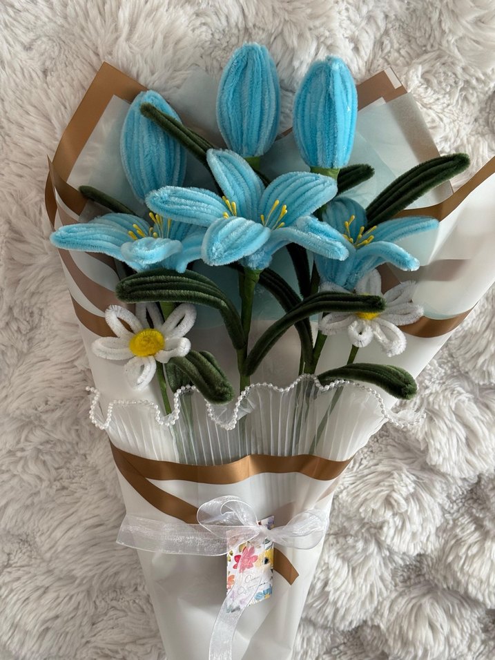 Bohem Tarzda Mavi El Yapımı Çiçek Buketi