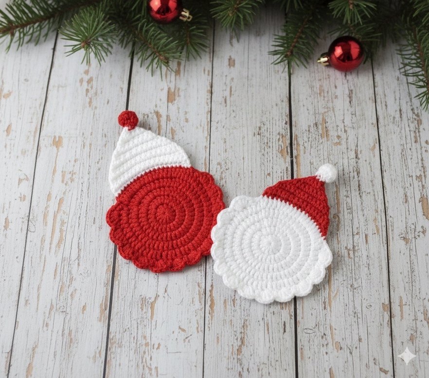 Bohem Tarzda Örgü Noel Baba Bardak Altlıkları