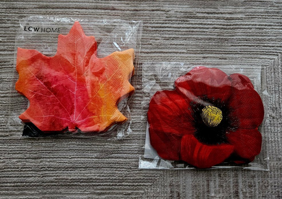 Bohem tarzda, detaylı dokulara sahip renkli akçaağaç yaprağı ve kırmızı çiçek gelincik peçete 5x2 toplam 10 adet