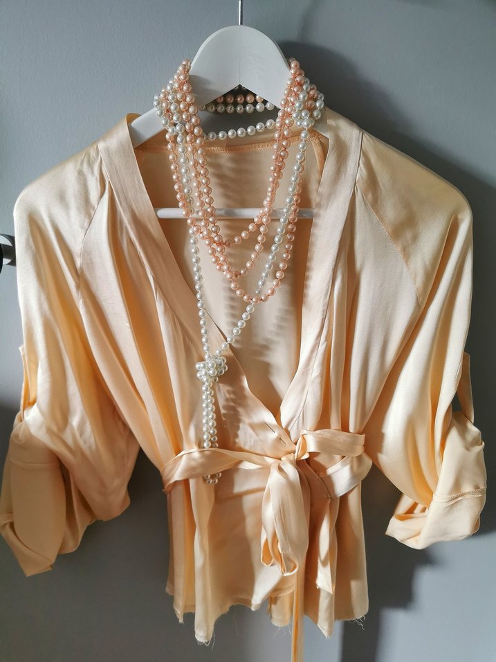 Bohem tarzda, uzun boylu, bej renkli kadın sabahlık. İnce askılı, bol kesim ve sade tasarıma sahip rahat bir modeldir.