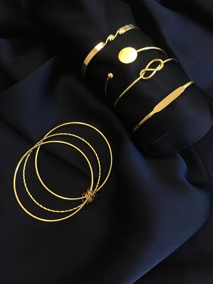 Günlük kullanıma uygun, bohem minimalist tarzda, tokalı detaylı altın renkli kadın bileklikleri seti. ✨