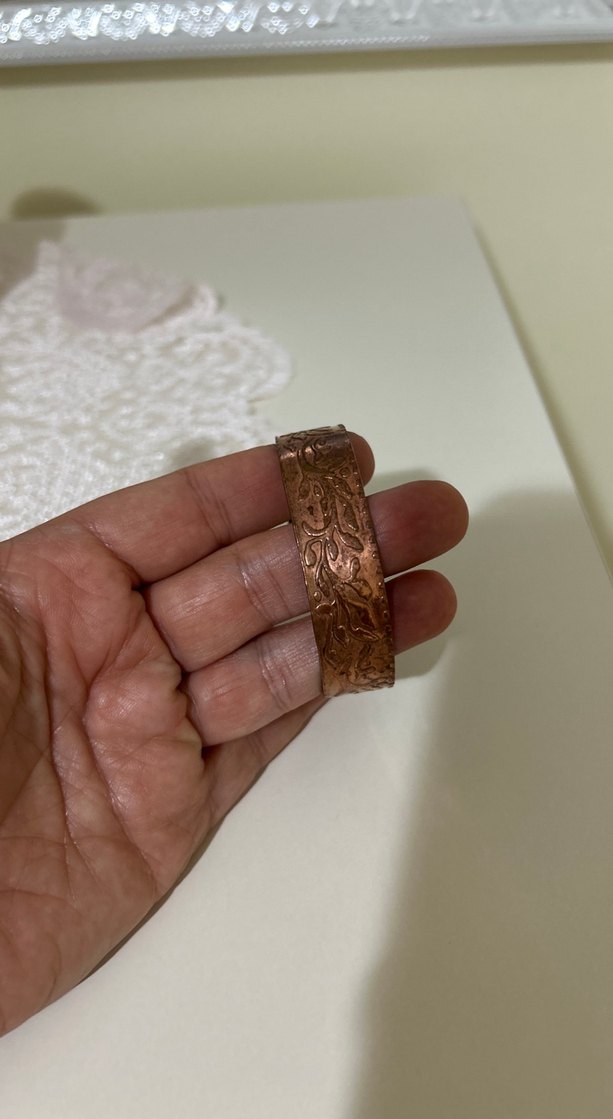 bohem tarzda bakır vintage bileklik ve ayetelkürsi yazılı bakır bileklik. Düz yüzeye sahip olup günlük kullanım için uygundur. Limon ile parlatıldığında rengi açılıyor.
