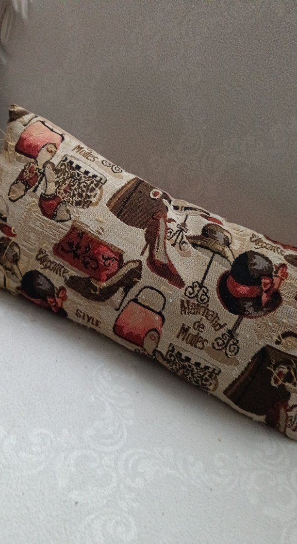 Bohem tarzı, koyu kahverengi baskılı desenli yastık, vintage moda öğeleriyle dekoratif bir dokunuş sağlar.