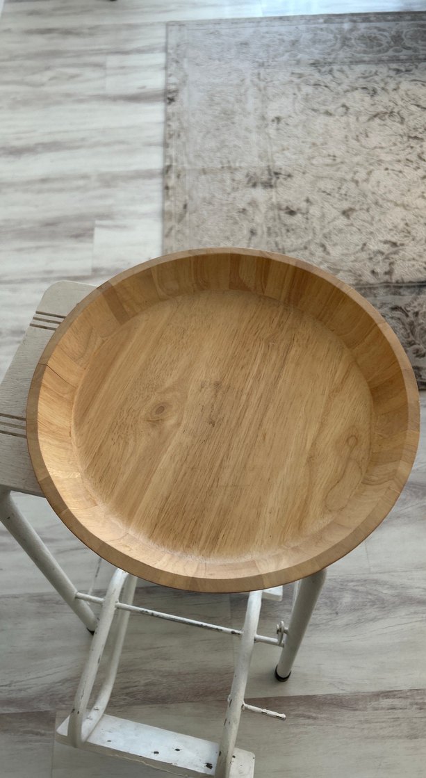 Bohem tarzı, doğal dokulu bej renkte ahşap tabak. Pürüzsüz yüzeyi ve doğal görünümüyle dikkat çeker. ️