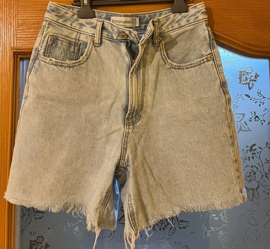 bol kesim bej mini denim şort, günlük kullanıma uygun ve rahat bir görünüme sahip.
