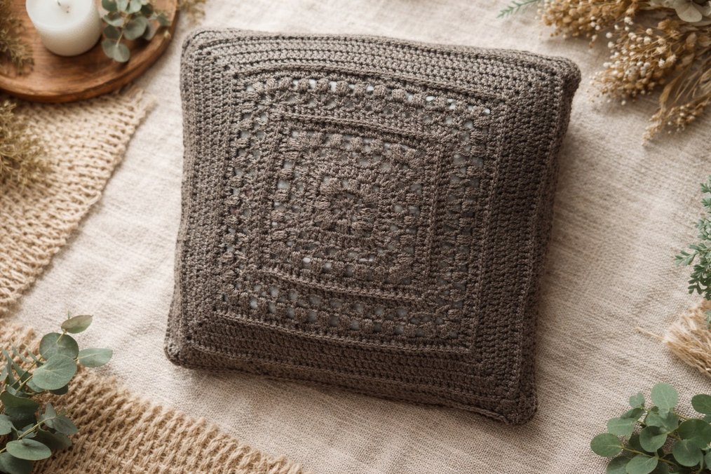 Bohem Tarzı Bej Örgü Kırlent Kılıfı