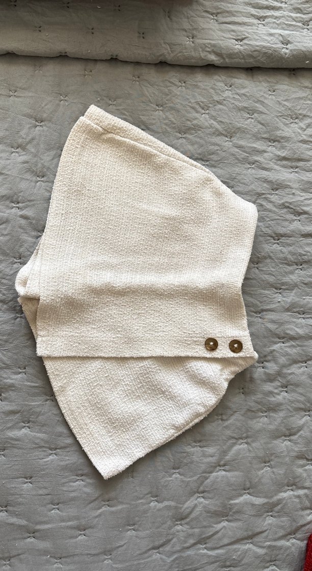 Bohem tarzı, beyaz tonlarında yumuşak dokulu havlu. İki düğme detayı bulunur.