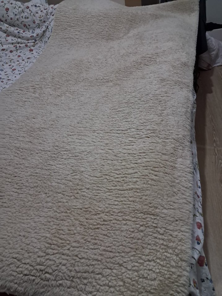 Bohem tarzı, beyaz ve gri tonlarda, desen içermeyen yumuşak dokulu halı. Her odaya sıcaklık katar.