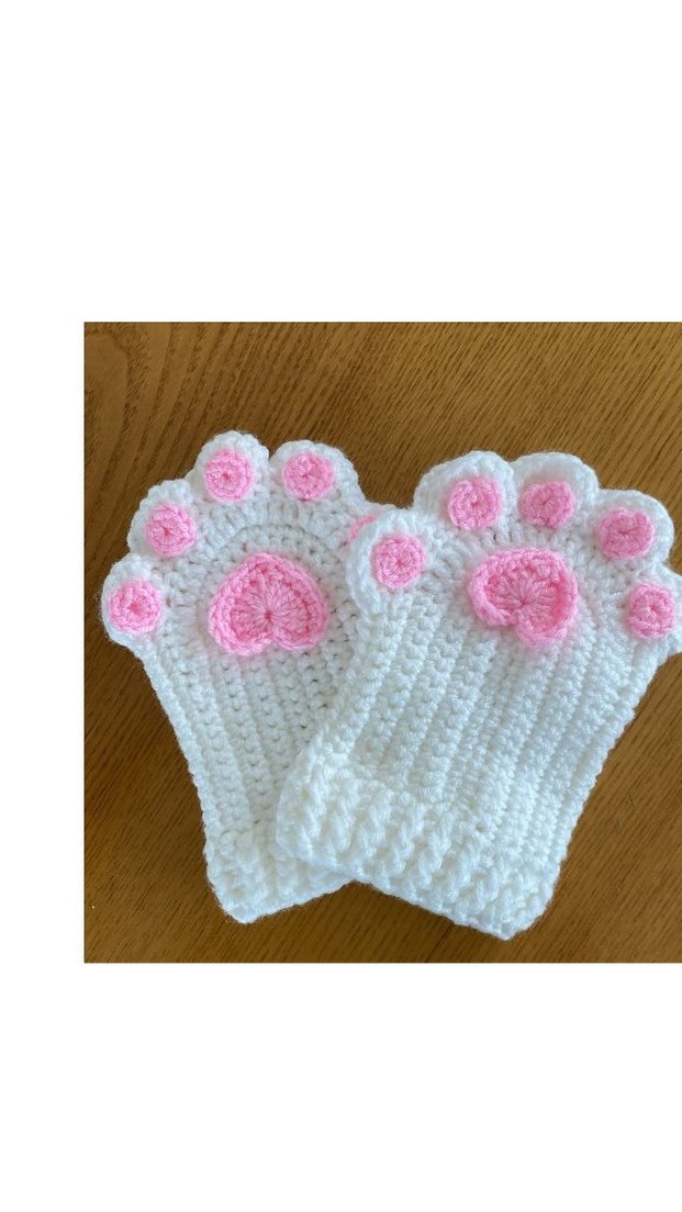 Pembe pati detaylı beyaz örgü eldivenler, bohem tarzda ve rahat. Yumuşak, el yapımı, retro ve hippie tarza uygun.