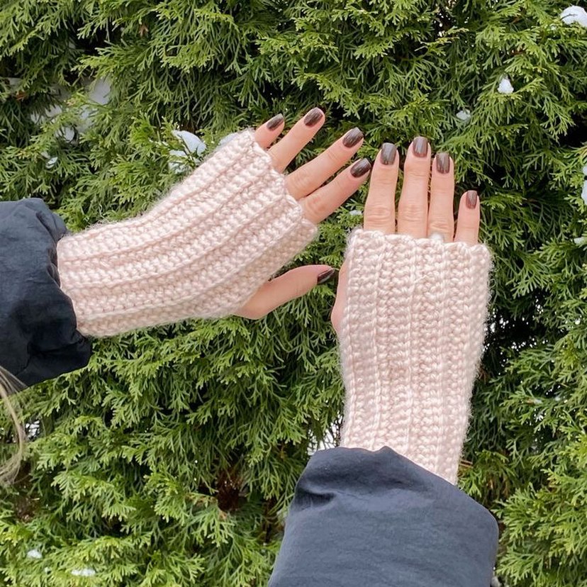 Bohem Tarzı Beyaz Örgü Parmaksız Eldiven