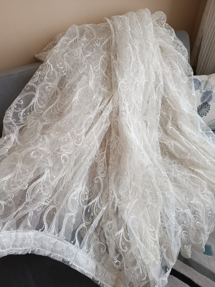 Bohem tarzı beyaz tül perde, ince işlemeli ve hafif dokusuyla odalara zarif ve ferah bir hava katar. yırtılma vardır fiyatı uygun yazıyorum eni 280 uzunu 250