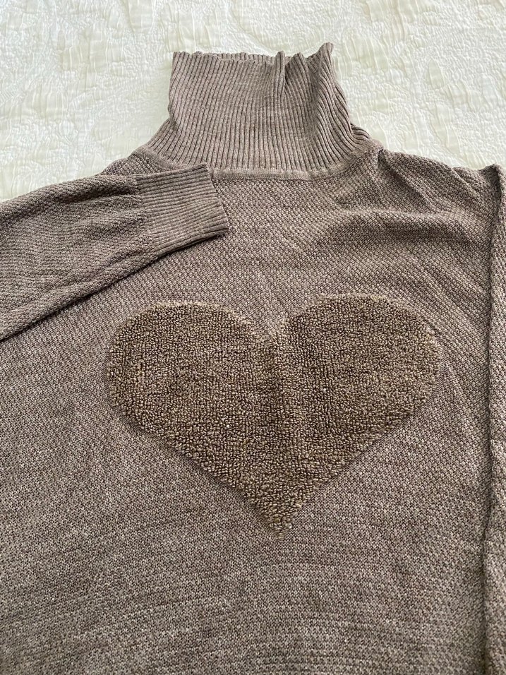 Boğazlı, uzun kollu, örgü kadın kazak. Rahat kesimi ve önünde kalp deseniyle bohem tarzını yansıtır. Günlük kullanıma uygundur.