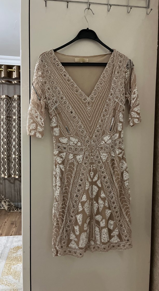 Bohem tarzı boncuk işlemeli pullu şık abiye