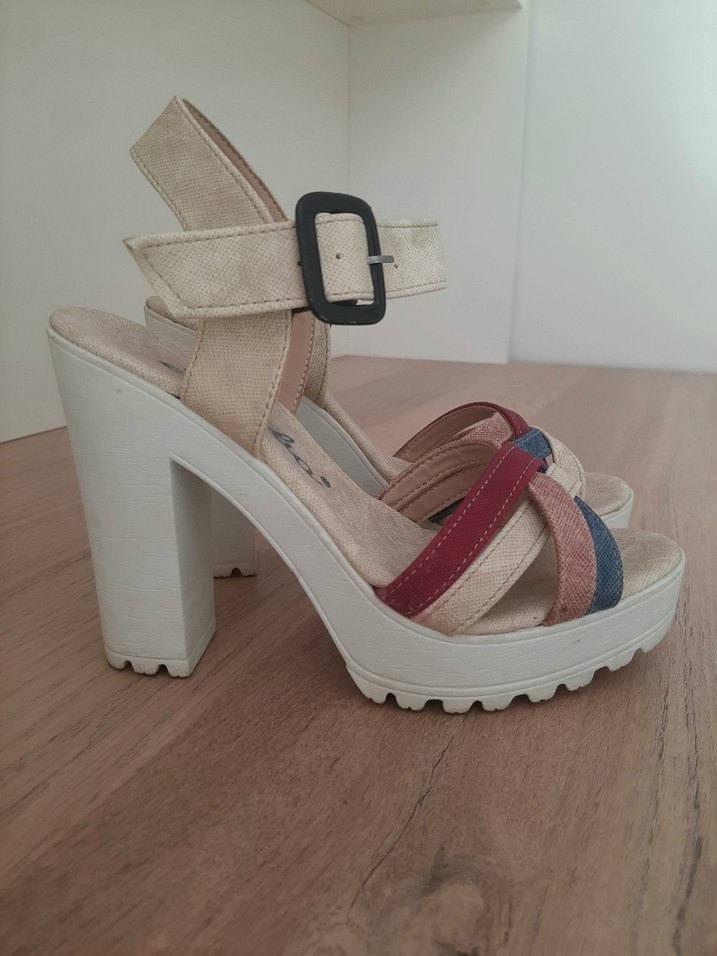 Bohem Tarzı Çok Renkli Platform Topuklu Sandalet