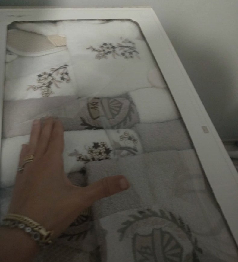 Bohem tarzı desenlere sahip beyaz ve gri renklerde havlu seti, yumuşak ve dekoratif kullanım sağlar.