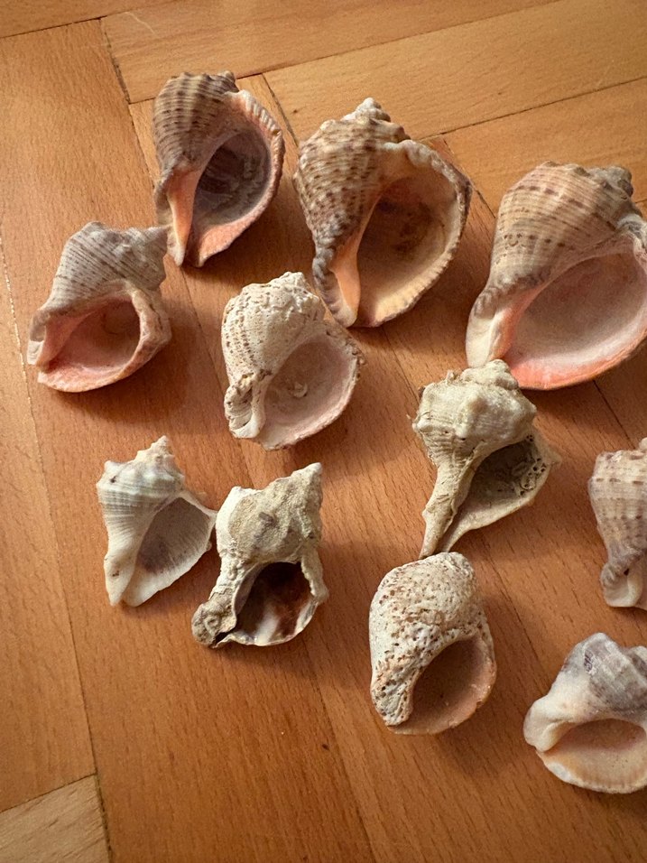 Bohem tarzda, farklı şekil ve boyutlarda doğal deniz kabukları. Dekoratif veya el işi için uygundur.3 tanesi 7cm diğerleri 6 5 4 cm aralığında