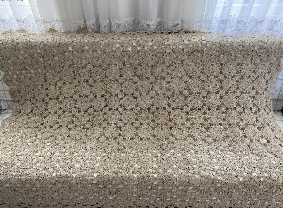 Bohem Tarzı El Örgüsü Bej Dantel Örtü, Masa Örtüsü &Yatak Örtüsü
