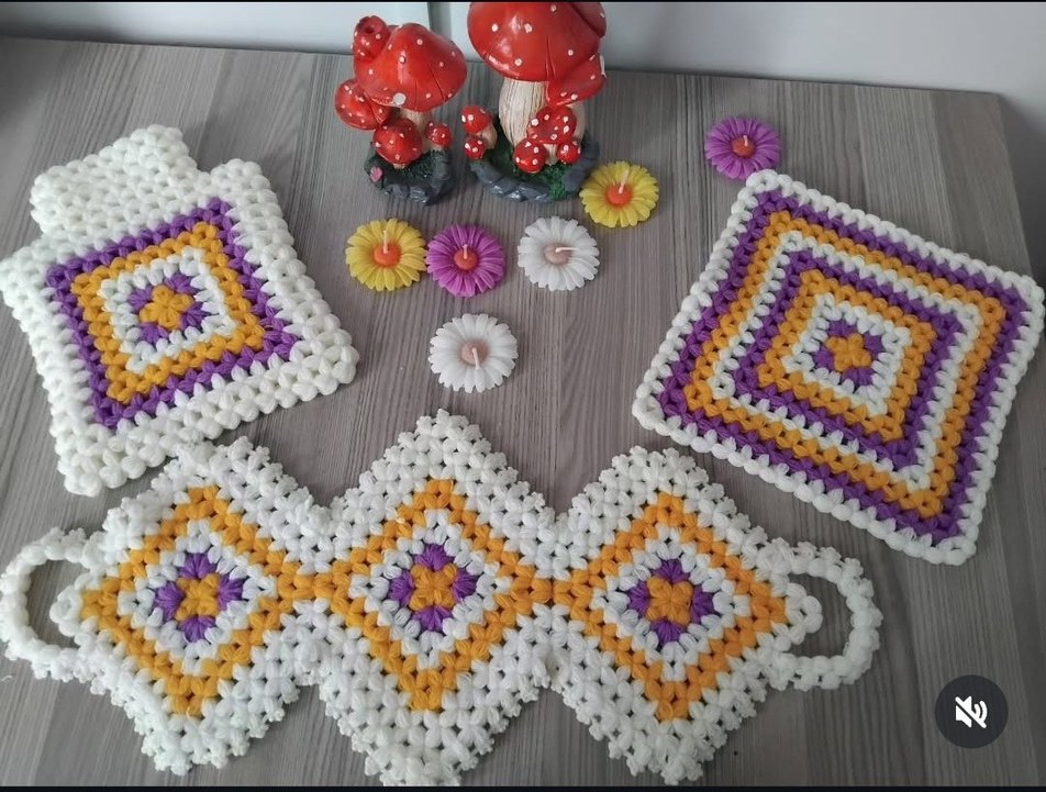 Beyaz, sarı ve mor renklerde. lif takım Seti