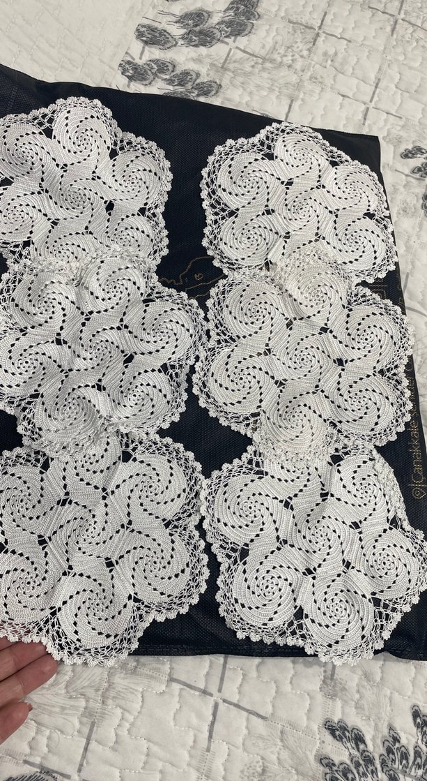 İnce iplikle yapılmış, karmaşık dönme desenlere sahip bohem tarzı el yapımı dantel motifleri. Dekoratif el işleri için uygundur. 6 adet