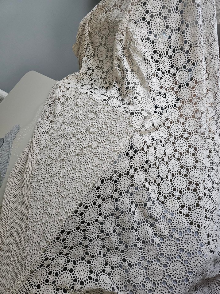 Bu el yapımı dantel örtü, bohem tarzda karmaşık çiçek desenlerine sahiptir. Her mekana zarif ve sanatsal bir dokunuş katar.