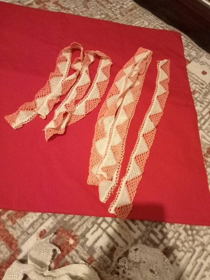 Bohem tarzda, zikzak desenli el yapımı dantel şeritler. Dekoratif el işleri veya giysi süslemeleri için uygundur.