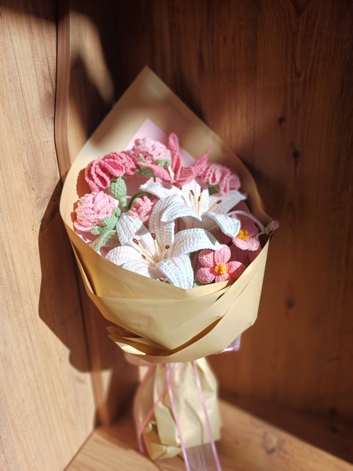 Bohem Tarzı El Yapımı Örgü Çiçek Buketi
