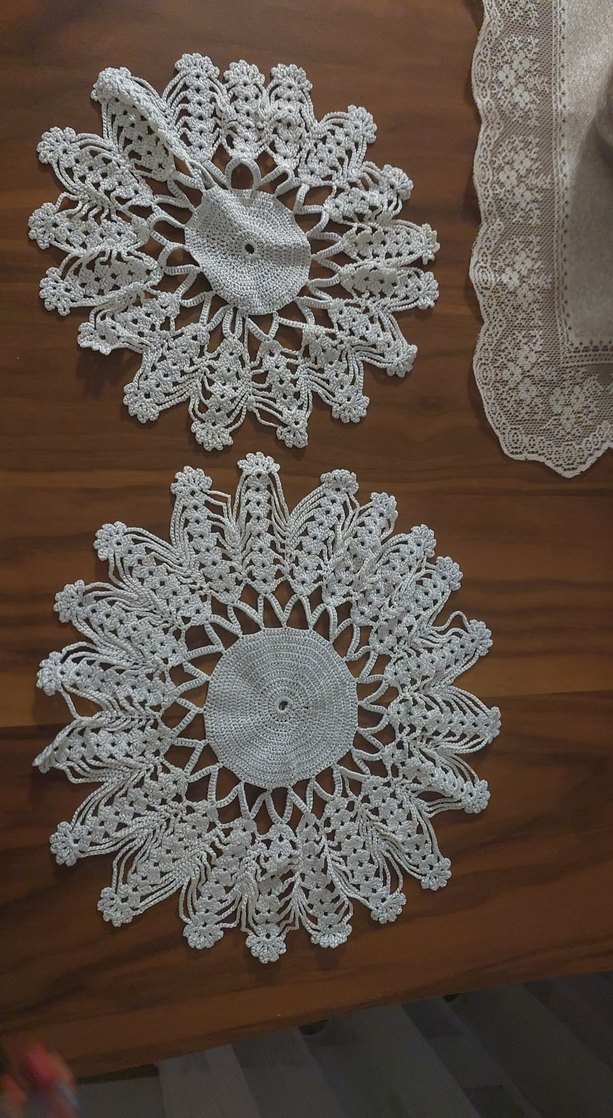 Bohem tarzda, detaylı desenlere sahip el yapımı örgü motifler, dekoratif kullanım için uygundur. Parlak ipten tığ işi .2 adet 1 adeti daha büyük bir adeti daha küçük.Hafif griyimsidir.
