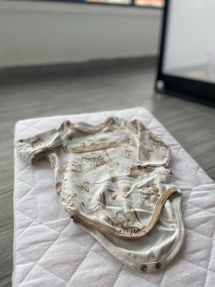 Bej ve gri renklerde, yakalı ve kısa kollu erkek bebek body. Düğmeli ve bohem tarzda. Yumuşak sentetik kumaştan üretilmiştir.