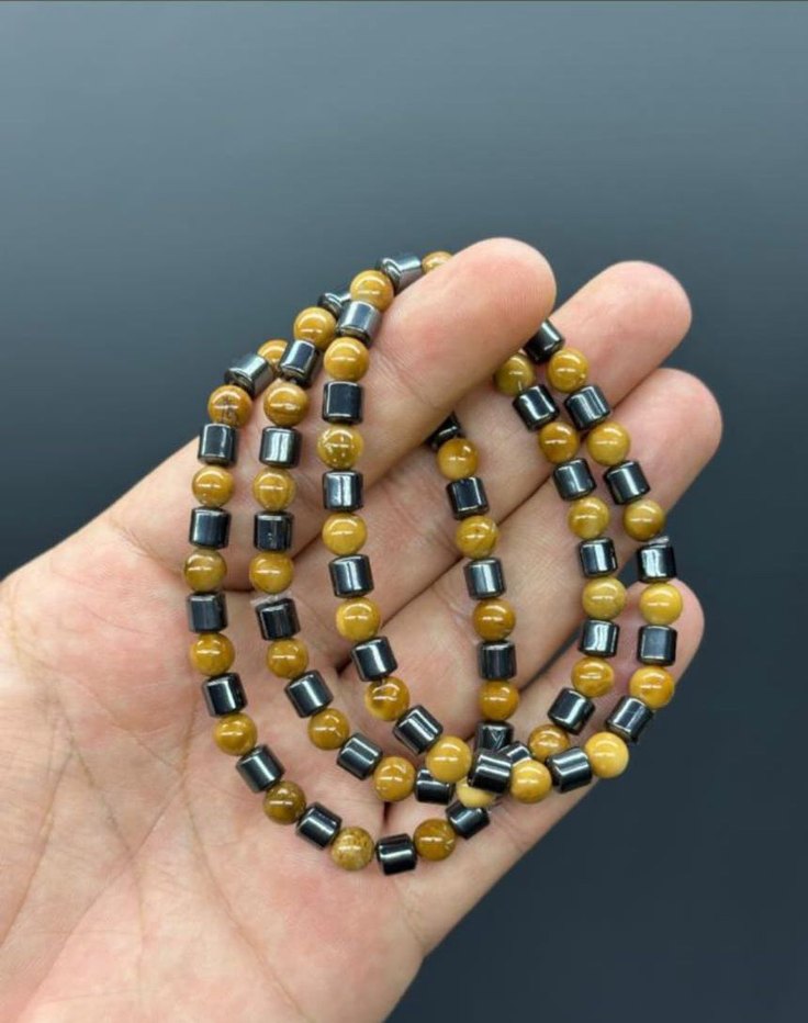 Bohem tarzı erkek bilekliği, koyu altın tonlarında yuvarlak ve silindirik boncuklarla minimalist ve retro bir görünüm sunar.✨