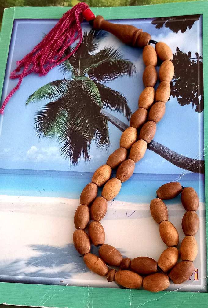Camel renginde, doğal ahşap boncuklardan yapılmış bohem tarzı erkek tesbih. Canlı kırmızı püskülü ile renkli ve rustik bir görünüm sunar.