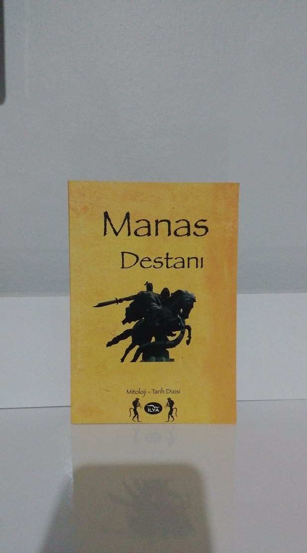 Bohem tarzda, koyu kamel renkli erkek vintage rozet. Üzerinde "Manas Destani" yazısı ve atlı figürü bulunur.
