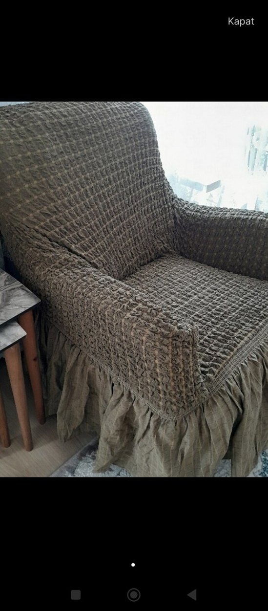 Bohem tarzı açık yeşil kanepe örtüsü, dokulu yumuşak kumaş ve fırfırlı etek detayıyla rahat bir görünüm sunar. ️