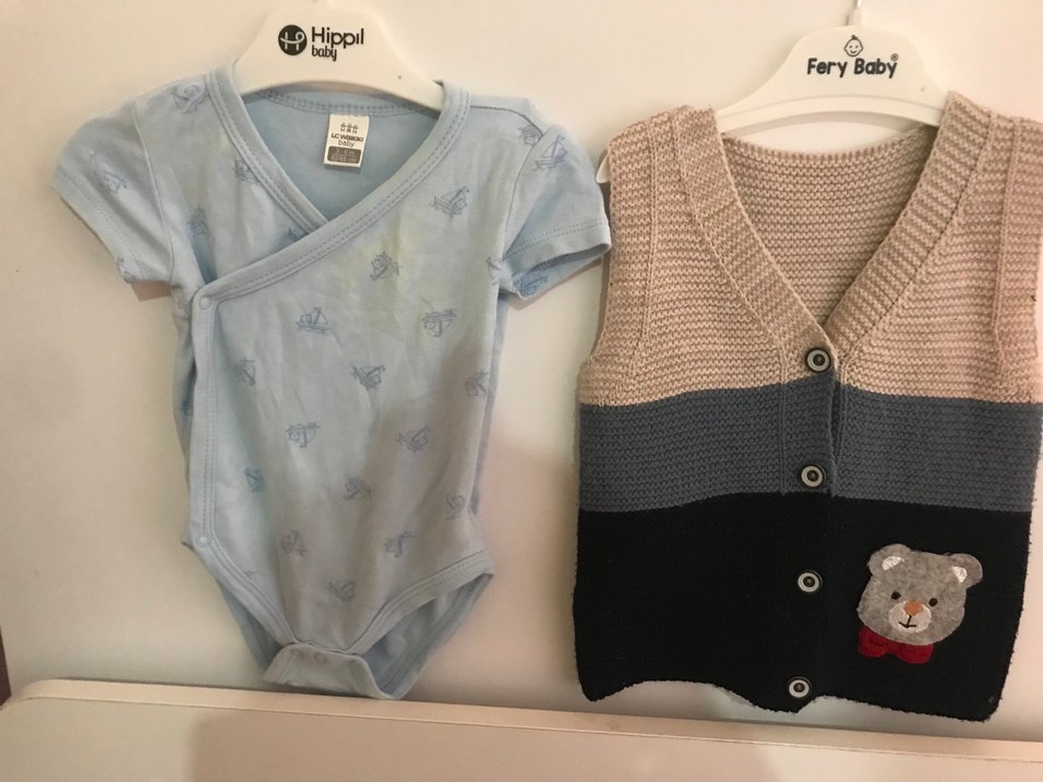 Bohem Tarzı Gri Örgü Erkek Bebek Body