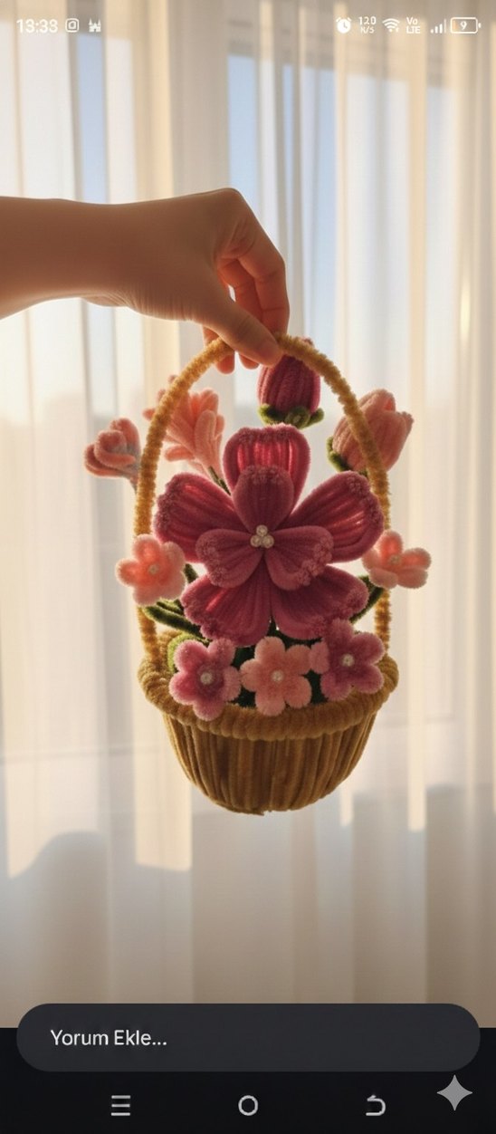 Bohem Tarzı Kadife Çiçek Sepeti