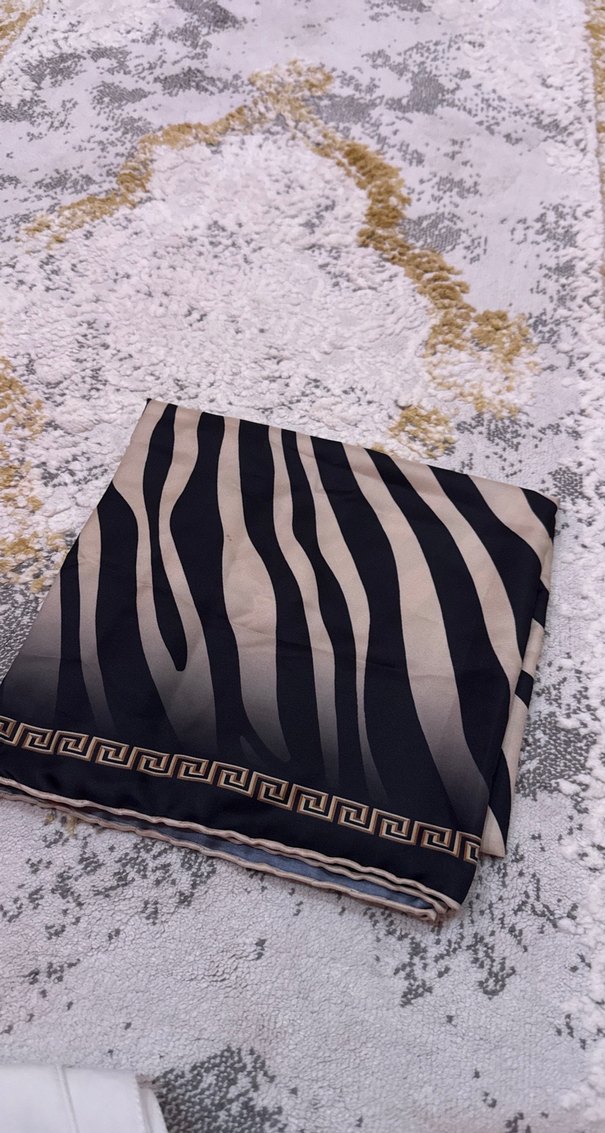 Kadınlar için bohem tarzda, drapeli, yumuşak sentetik kumaştan yapılmış, gri ve kahverengi tonlarında desenli şal.