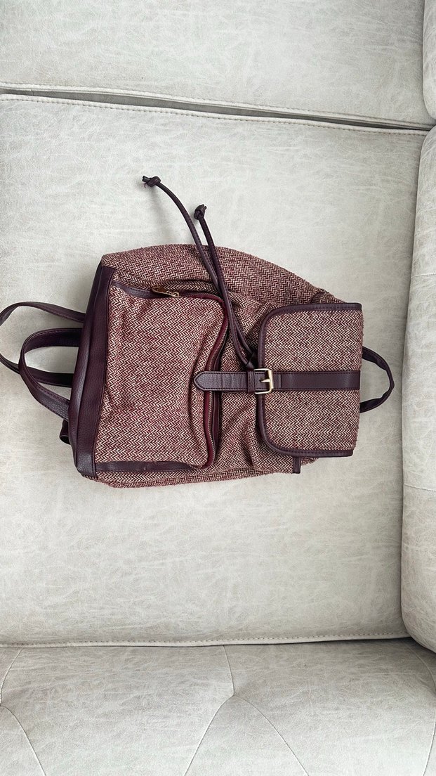 Kahverengi, sentetik kumaştan bohem tarzı kadın sırt çantası. Tokalı kapağı ve desen içermeyen yapısıyla günlük kullanıma uygundur.
