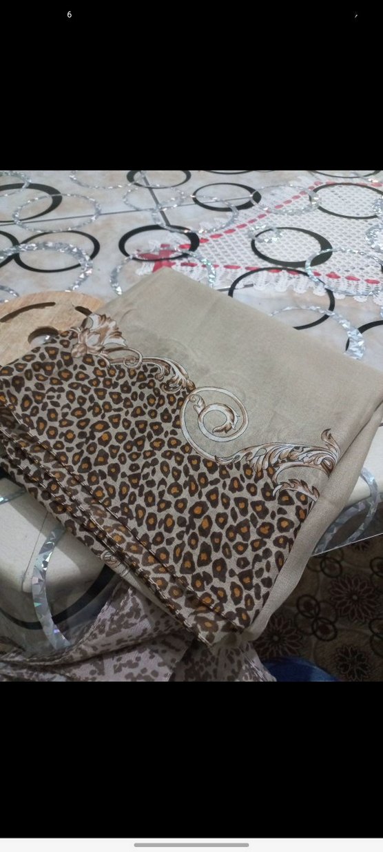 Kahverengi, yumuşak sentetik kumaştan yapılmış, bohem tarzda drapeli kadın fular. Leopar ve süslü desen detaylarıyla retro ve rahat bir görünüm sunar.