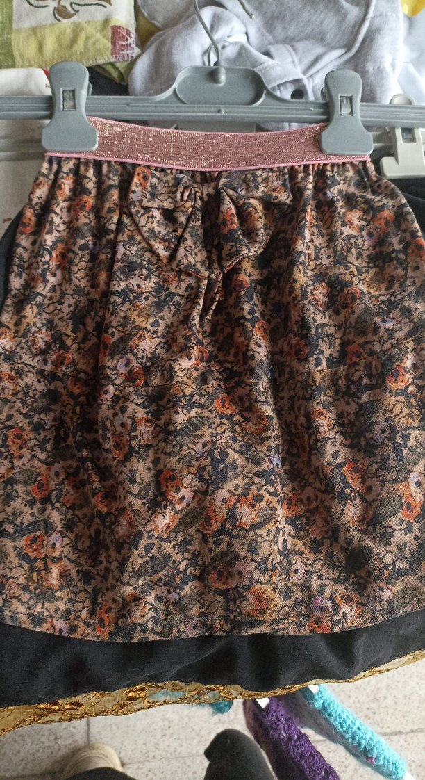 Bohem tarzı, rahat kesim ve drapeli tasarıma sahip, koyu kahverengi batik çiçek desenli midi etek. Rahat, hafif ışıltılı bel bandı bulunur. kız çocuk etek