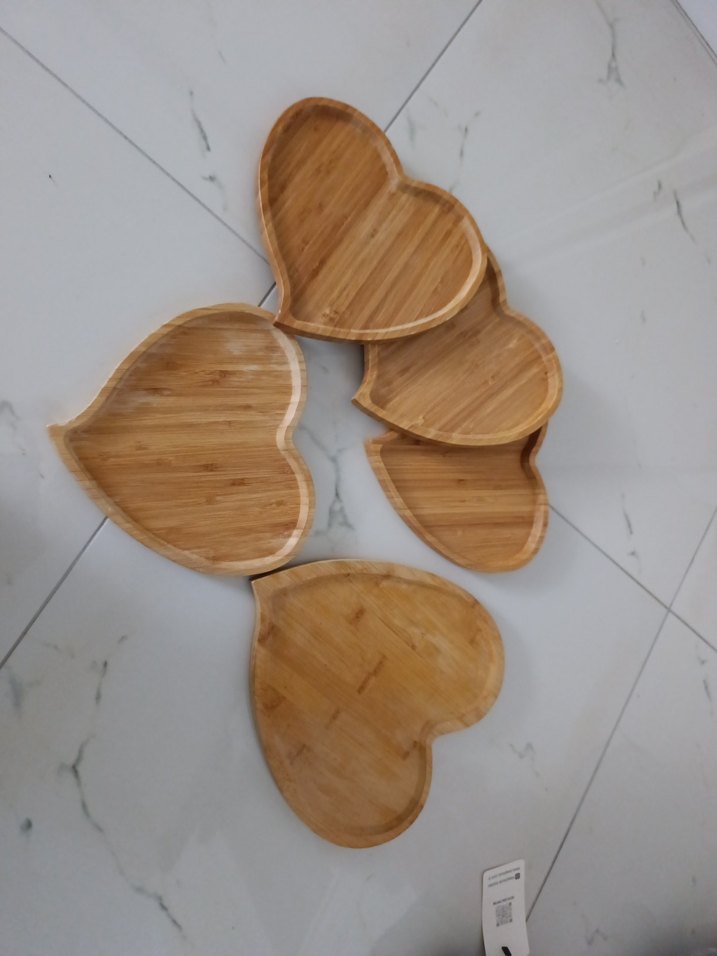 Açık bej renkte, bohem tarzında kalp şekilli, ahşap tepsiler. Servis veya dekorasyon için uygundur. ️